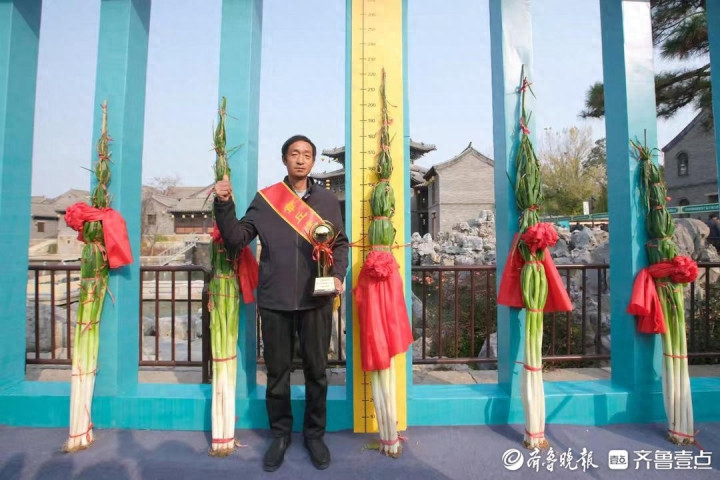 11月16日,“泉养千年韵・葱香漫古城”2025 中国・章丘大葱丰收季在明水古城启动。活动中,绣惠街道王金村苗发勇种植的大葱以2.27米的高度获得 “葱王” 称号,这是苗发勇家的大葱第五次斩获 “葱王” 殊荣。苗发勇种植大葱已有 30多年,他告诉记者,今年章丘大葱亩产约8000斤,价格较去年有所上涨,目前每斤售价在5—6元。